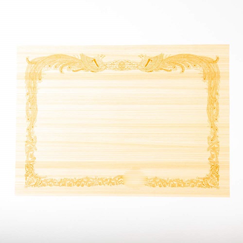印刷することができる天然木の賞状用紙。